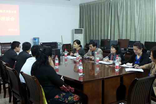 2014年5月8日晚八点,艺术设计系在艺术校区第一栋教学楼203会议室举办了外聘教师座谈会,系主任佘莉、系党总支书记梁毅、教学副主任韦诗呐、实训副主任郭琦以及该系外聘教师和秘书齐聚一堂,就系部的发展现状、学生的教育和未来目标畅所欲言,座谈会由教学副主任韦诗呐主持。