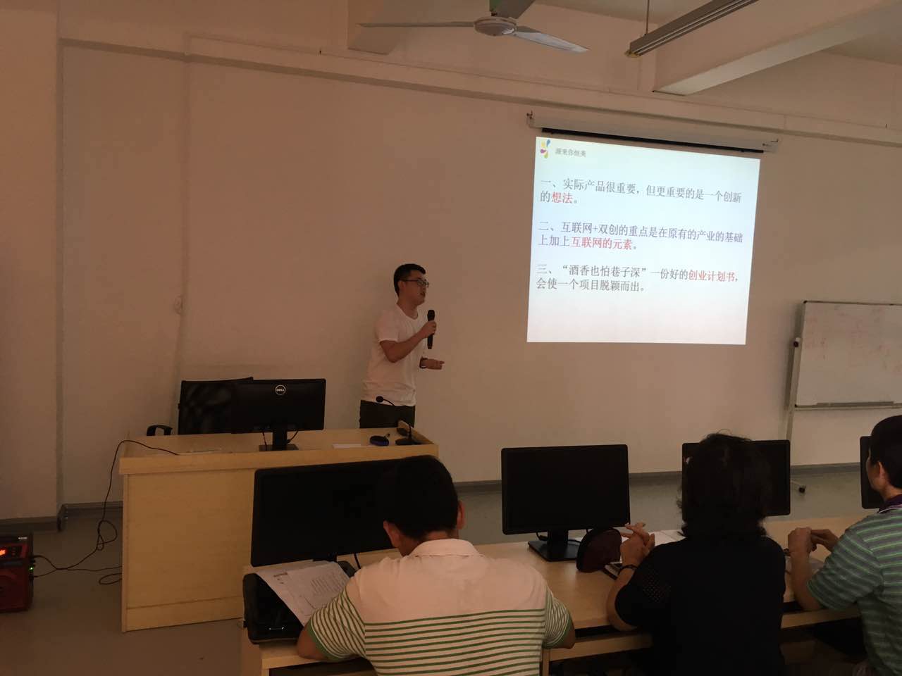 会上邀请了往届参赛获奖选手、我校大学生KAB俱乐部会长、2015物联网班学生孙竟淋同学给全体教师分享参赛的感受。孙同学从参赛要求、标准及评委的关注点等多个方面讲述竞赛特点,以自己的参赛项目-创业计划书模板为例,指出了市场分析到营销策略及销售环节选手们应该注意的细节。孙同学条理清晰地讲述及准确规范的归纳赢得了老师们的热烈掌声,他的经验分享对下一步老师提供更有针对性地指导很有帮助。