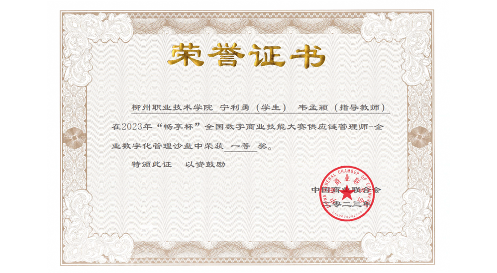 2023年“畅享杯”全国数字商业技能大赛供应链管理师- 企业数字化管理沙盘赛项一等奖 来源: 发布时间:2025-05-30 10:37:53 浏览次数: 次 【字体:小 大】 一审:贸旅一审 终审:贸旅三审 分享到: 【打印正文】
