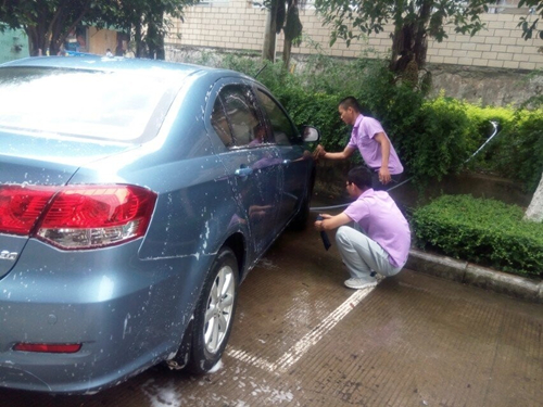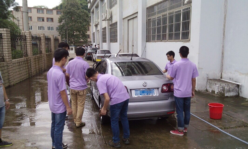 活动过程中,同学们饱含热情,配合默契,分工合作,安排有序,细心耐心地为每一辆车冲水擦洗,尽管累得满头大汗,可没一个人说一句怨言,看着被洗得一尘不染的车,再累也感到值得。宋武生同学说:“此次活动是对我们课堂所学知识的一个检验,不仅提高了我的动手能力,更可以尽我们的力量回报平时辛勤付出的老师们,心里特别高兴与满足?!?br> 活动持续了3个小时,共清洗了15辆私家车,同学们认真的服务态度得到参与活动老师的一致好评和称赞。参与活动的黄老师表示,在整个洗车服务过程中,同学们都抱着学习心态,所以做事比外面的汽车美容中心更细致、认真,他还说,希望这样的活动能长期开展下去,能多组织此类结合专业特色的志愿者服务活动,并且让更多的学生能参与进来,为全校教职工乃至社会更多的人群提供优质的服务。