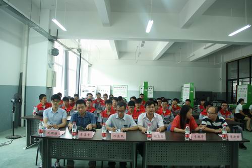 新闻网消息(文/汽车工程学院 谭新曲 图/汽车工程学院 孟祥磊)9月29日上午,汽车工程学院2016级SGAVE班开班典礼在新实训楼4101教室简朴而隆重地举行。学??萍伎⑿F蠛献饔刖鸵荡ΥΤず沃局?,汽车工程学院院长韦林华、副院长邓益民,SGAVE项目专职教师谭新曲、李海青、毕业生代表2013级SGAVE班学生龙顺海以及2016级全体SGAVE班学生出席典礼。