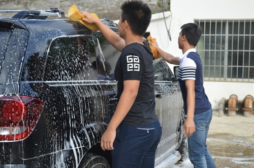 参与服务的2016级汽车运用技术专业的黄财高同学表现积极,自幼失去右手的他,用左手跟同伴一起一遍遍认真地帮老师们擦洗,从冲洗到打泡沫,再到洗净,他都用一只手独立完成,没有让别人帮忙,而清洗轮毂的时候他也比别的同学更认真仔细,在场的老师们看到了,深受感动,一同参与洗车的其他同学也受到鼓舞,忘记了脏和累,干得更加起劲。