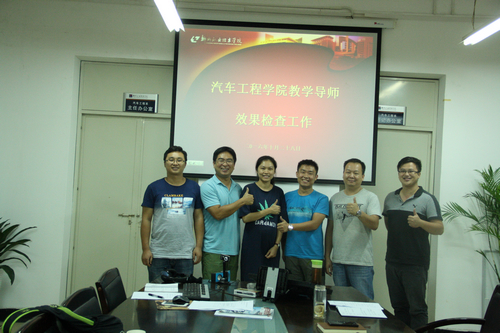 新闻网消息(文/汽车工程学院 倪玲娣 图/汽车工程学院 倪玲娣 孟祥磊)为了切实加强新教师培养工作,充分发挥优秀骨干教师对新教师的传、帮、带作用,根据学?!督萄У际χ剖凳┌旆ā罚霸鹤諿2015]3号)精神,汽车工程学院在2015年组织实施了师带徒工作。截止目前,师带徒工作已经实施一年。为了检查导师制工作实施效果,检验新教师教学业务水平,汽车工程学院成立了以院长韦林华为组长、副院长邓益民为副组长的考核领导小组,拟定了《关于开展教学导师考核工作的通知》,对2015-2016学年教学导师制实施工作进行了检查。