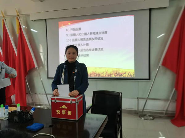 大会通报了到会党员人数,到会人数符合党章和基层党组织换届选举的相应规定,支部换届选举会议正式开始。首先由教工党支部副书记范利红同志作工作报告,报告总结回顾了上一届支部的工作成绩及支部的活动开展、自身建设等情况,全体党员对支委的工作给予了高度肯定。