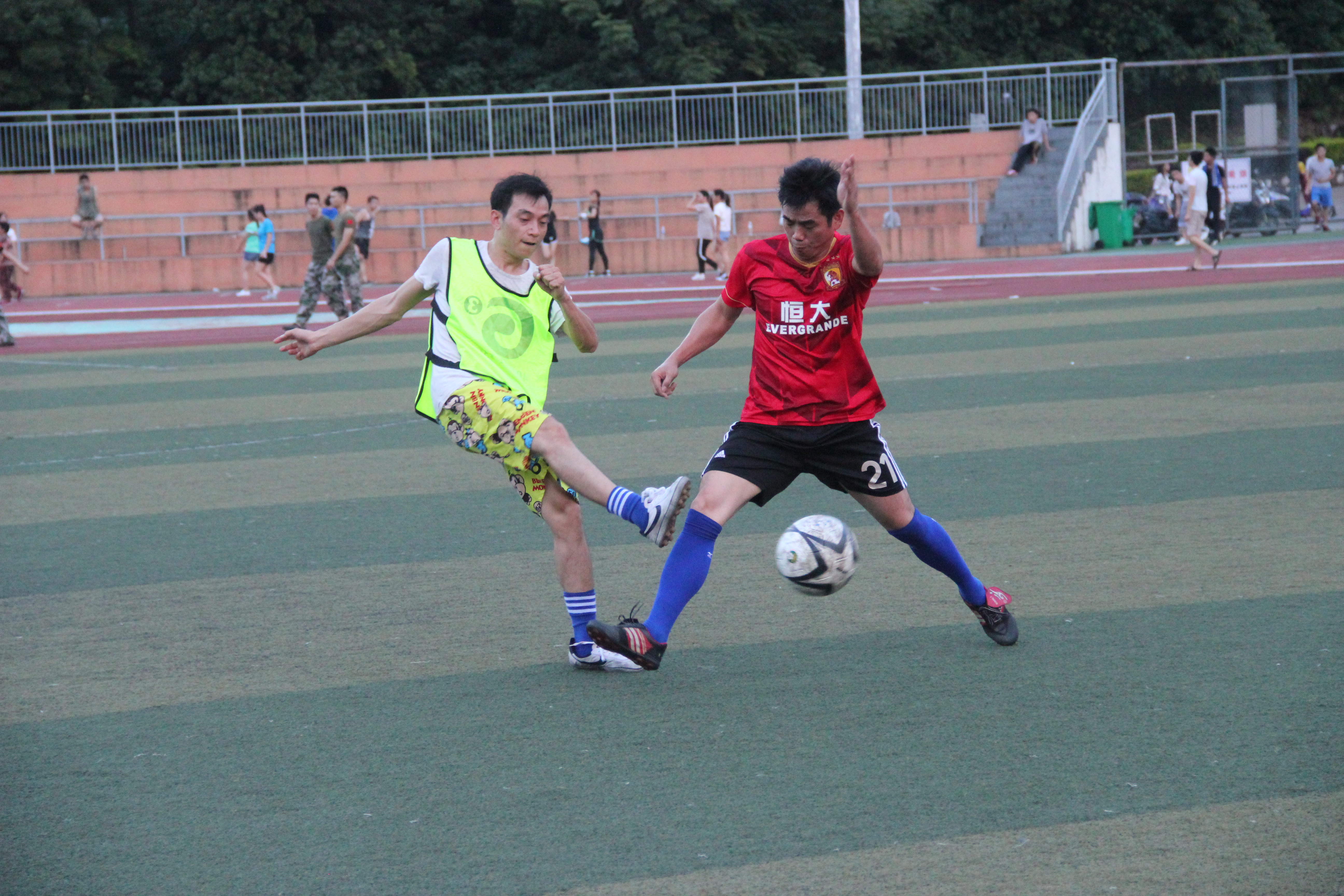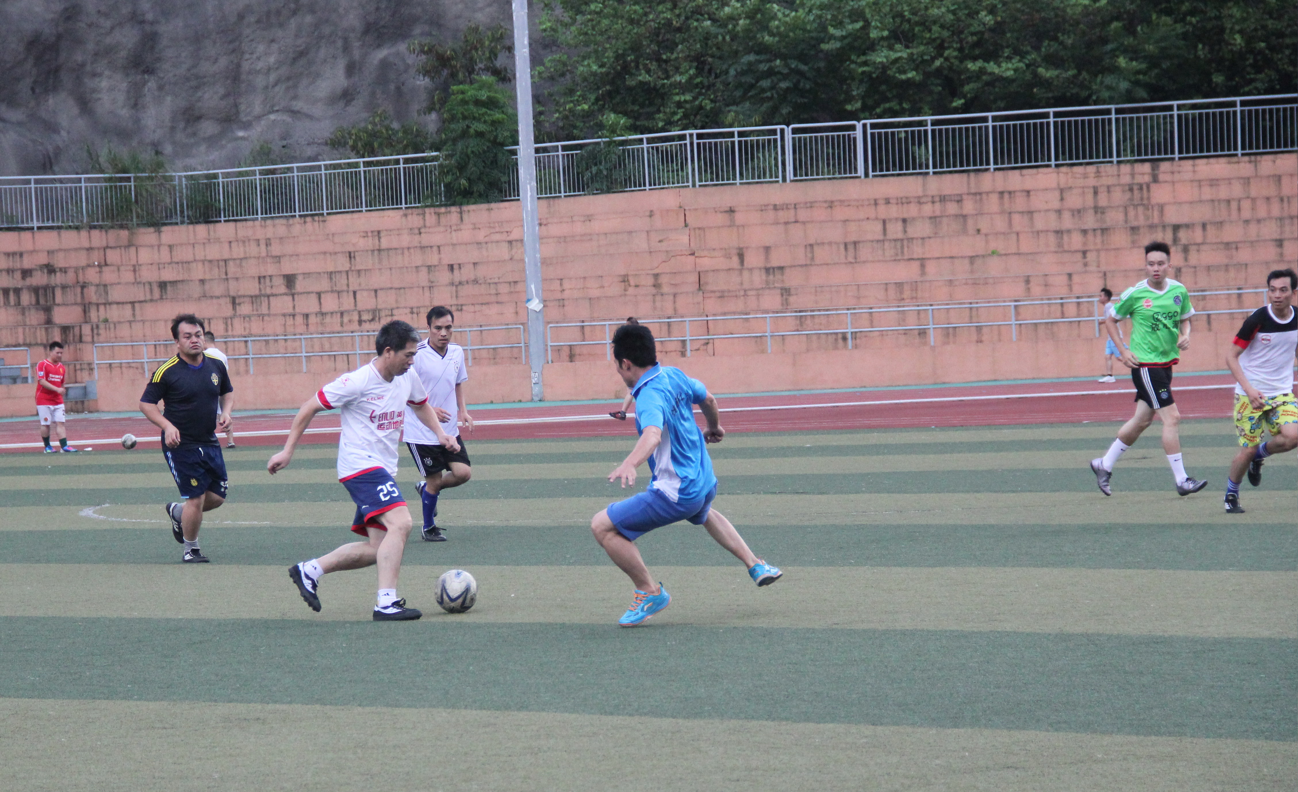 与机电教工队PK的公共基础部教工队,仅以1分劣势暂居积分榜第三位。双方球员中都有不少学院教工队的队员,又都是曾获得过冠军的“豪门”,战况激烈。第一、二节比赛,公共基础部教工队坚持防守反击战术,严防死守,对对方核心球员进行重点盯防,守门员也发挥出色,多次化解了机电教工队的犀利进攻;同时,也打出了几次漂亮的防守反击,多次高质量的远射成功制造了对方球门区内的混乱。前两节比赛双方均无建树,第三节,公共基础部队员后卫注意力开始下降,在一次禁区混战中被对手攻入一球,一时乱了节奏,后卫大举压上,被机电队在终场前攻入一球,最后以0:2告负。