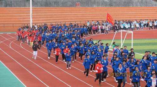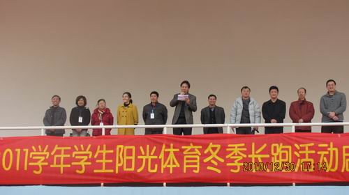 为全面贯彻落实《教育部办公厅 国家体育总局办公厅 共青团中央办公厅关于开展第四届全国亿万学生阳光体育冬季长跑活动的通知》精神,继续深入开展学生阳光体育运动,2010年12月30日下午17点,我院在田径场举行了第四届学生阳光体育冬季长跑活动暨迎新年长跑活动启动仪式,院党委副书记、学生阳光体育冬季长跑活动领导小组组长阳旭,领导小组成员,各系主管学生工作的领导和各系1500多名学生代表参加了启动仪式。