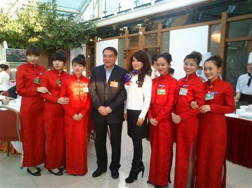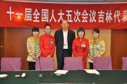 吉林省代表团领导(中)与我院酒店管理专业学生合影