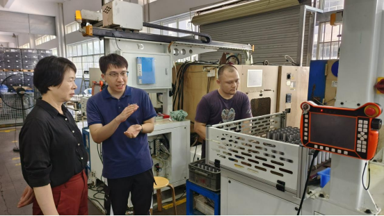 在专精特新企业广西淞森车用部件有限公司,企业工程技术部经理兰振从具体岗位的技能要求出发,着重介绍了部件装配与程序编写等岗位的职责与能力标准,他同时强调,希望毕业生不仅掌握实操技能,更能深入理解编程思想逻辑,具备解决实际问题的能力。此外,企业还展示了为新人制定的清晰的入职后发展规划,表达了与学校共同培养、长期合作的意愿。
