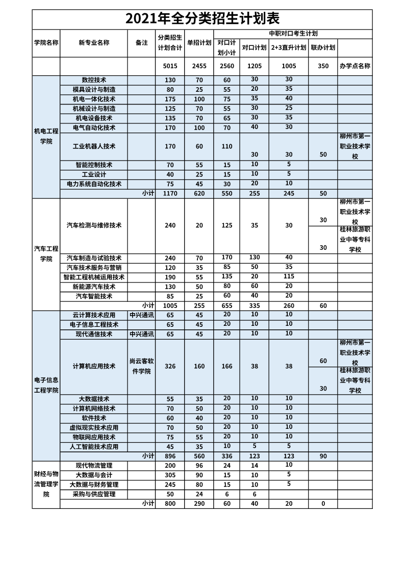 2021年柳州职业技术学院全日制普通高校分类招生(单独/对口招生)计划 来源: 发布时间:2021-03-14 16:12:36 浏览次数: 次 【字体:小 大】 终审:招生信息中心 分享到: 【打印正文】