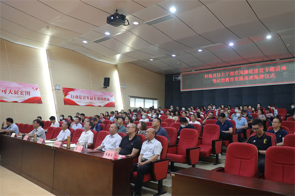 新闻网消息(文/纪委办 景凌凌、图/宣传部 罗世华)6月22日上午,柳州职业技术学院与柳州市鱼峰区人民检察院法治教育实践基地揭牌仪式在我校社湾校区100报告厅举行。该基地是柳州市首个检察机关与职业院校共建、共享的法治教育实践基地。柳州市人民检察院党组副书记、副检察长吴虹,柳州市鱼峰区人民检察院党组书记、检察长梁韬,柳州市及柳州市鱼峰区检察院检察官代表以及我校党委书记刘子林,党委副书记、校长甘金明,党委副书记阳旭、副校长瞿凡、纪委书记李善文、总会计师冉福松和全体科级以上干部出席揭牌仪式。活动还邀请了鱼峰区人大代表、政协委员、人民监督员及相关媒体代表出席。揭牌仪式由校纪委书记李善文主持。