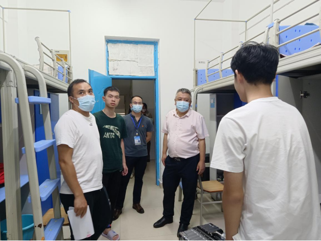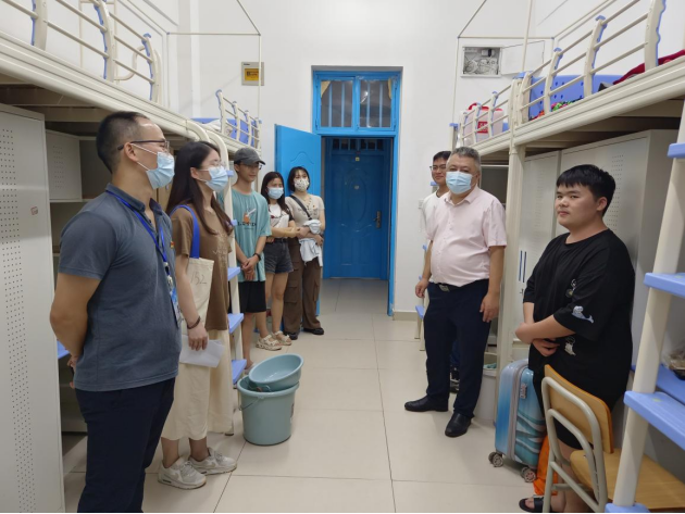 新闻网消息(图、文/机电工程学院  莫梅珍)为了第一时间了解新生的住宿和生活情况,加强常态化疫情防控形式下的住宿管理,让广大的新生能够尽早地适应大学生活,2022年9月16日晚上,机电工程学院党总支书记吴坤、学生科科长韦伟、2022级新生辅导员走访了2022级全体新生宿舍,带来了机电工程学院贴心的问候与关怀。