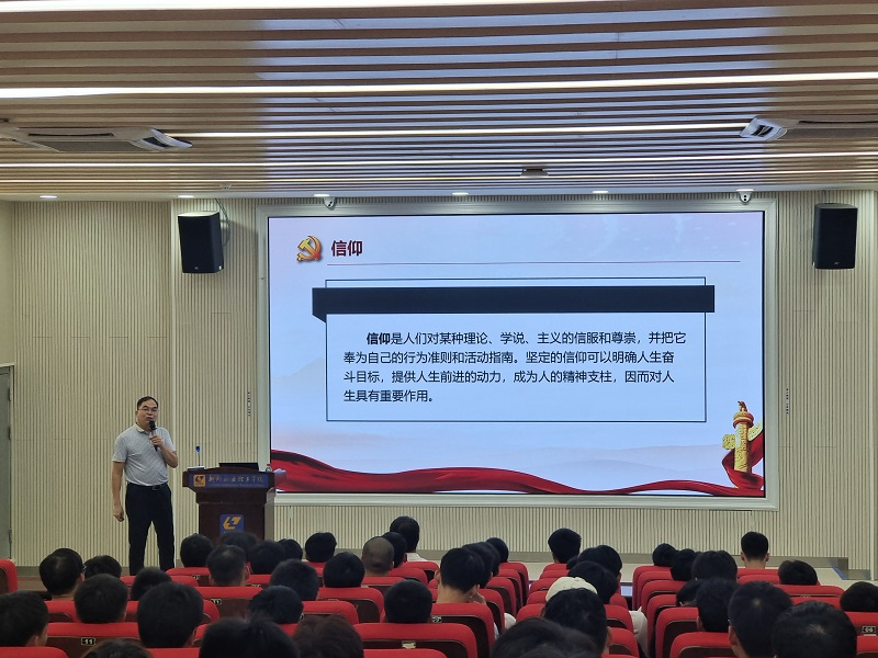 9月19日,党总支书记韦耀业在T4-D401从科学信仰的力量、为什么要加入中国共产党、发展党员的程序和如何加入中共共产党等四个方面展开一堂关于“信仰”的专题党课,并通过“身边人”的故事引导学生树立正确的入党动机,鼓励同学们积极申请入党。