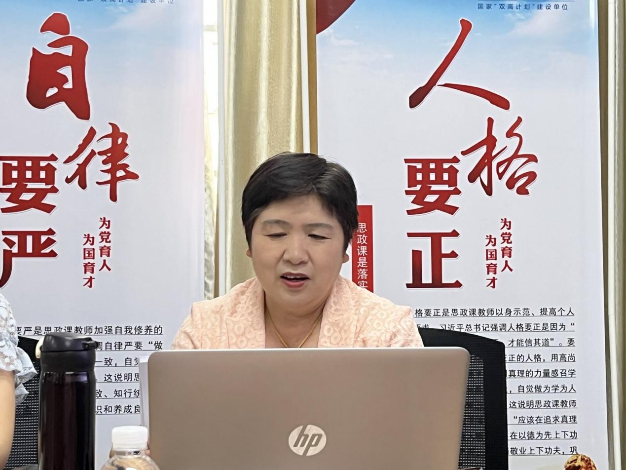 学院院长左妮红总结讲话。左院长指出,《中共中央关于党的百年奋斗重大成就和历史经验的决议》用“十个明确”对习近平新时代中国特色社会主义思想的核心内容进一步作出系统概括,指出习近平新时代中国特色社会主义思想“明确坚持和发展中国特色社会主义,总任务是实现社会主义现代化和中华民族伟大复兴,在全面建成小康社会的基础上,分两步走在本世纪中叶建成富强民主文明和谐美丽的社会主义现代化强国,以中国式现代化推进中华民族伟大复兴”。作为思政教师,要深入学习习近平关于坚持和发展中国特色社会主义的论述,关键在于理解总任务指明了中国特色社会主义的奋斗目标,分两步走在本世纪中叶建成社会主义现代化强国,始终坚持我国现代化建设的正确方向。