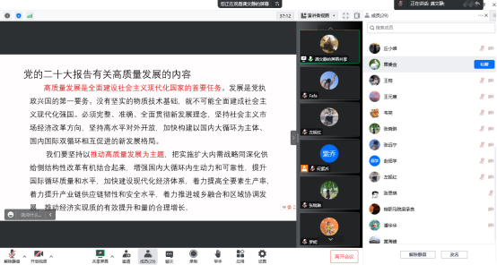 会上龚文静副教授就“以新发展理念引领高质量发展”专题教学内容进行理论阐述和教学设计介绍。她围绕“如何把握新发展阶段、贯彻新发展理念、构建新发展格局”“如何理解我国经济转向高质量发展”“如何坚持和完善社会主义基本经济制度”等三方面内容作了详细解读。龚老师紧密结合党的二十大精神,引用大量原著原文,同时立足柳州实际,列举出许多贴近生活的案例和建议,为全体任课教师提供了教学参考。与会教师针对相关教学问题展开了深入交流探讨,并就进一步完善教学内容、教学设计等提出了意见与建议。通过集体备课,思政课教师做到了资源共享、经验共享、相互学习、取长补短,对教学内容和教学思路的认识得到进一步深化,有效提高了教学技能,不断增强思政课的思想性、理论性、针对性和亲和力。